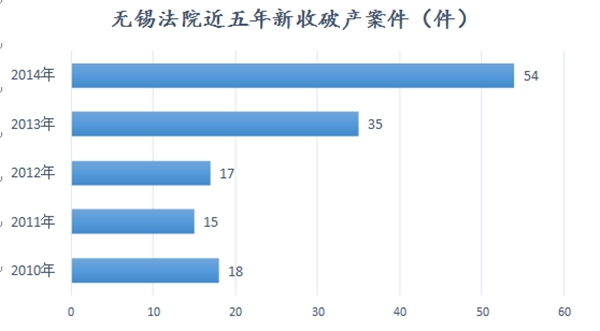 破产案件的多寡一直是一个地区金融生态健康与否的风向标。年报指出,由于受经济大环境的影响,近几年无锡地区经济处于深度调整期,在市场退出机制日益完善的背景下,破产案件近五年一直稳步增长。产能过剩、需求不足,加上融资难、借款难,相关企业深陷经营不善、资金链断裂的泥潭,最终只能进入破产程序。