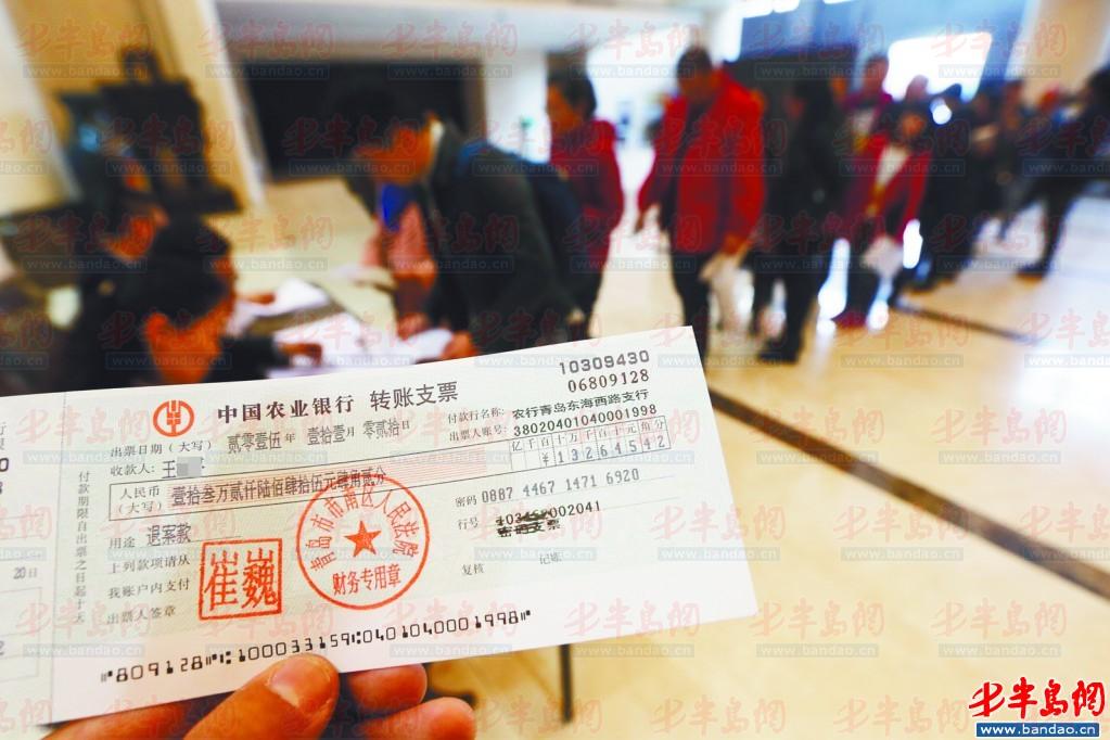 20日13时30分许,记者来到市南法院,此时门口已经围了不少人。不一会儿,执行法官开始集中发放行动,“暖倍儿”曾经的职工们排起长队,领取自己应得的那份工资,法官逐一核对身份信息后,将支票交给大家。
