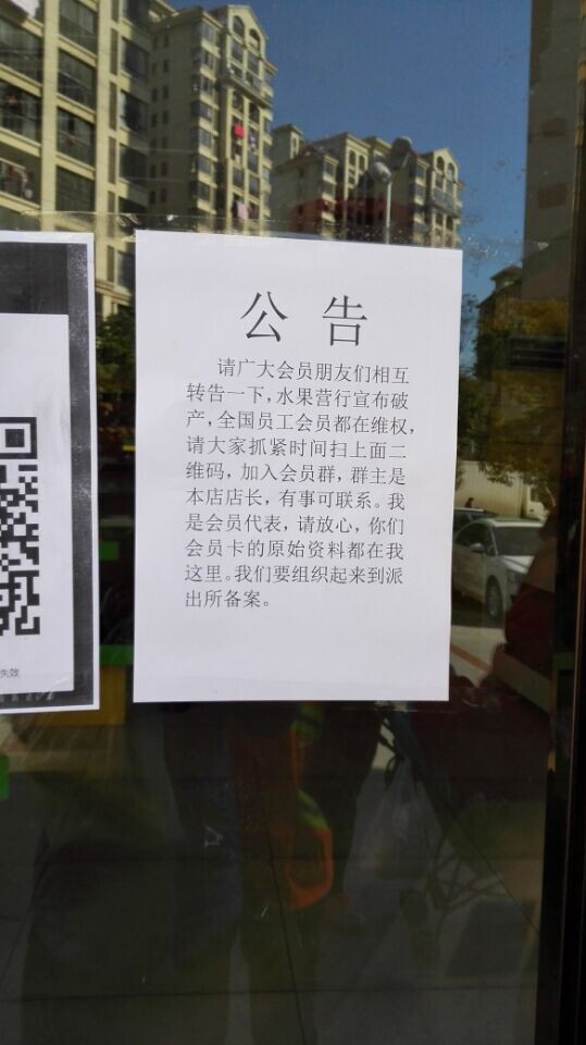 今天,记者探访多店发现,合肥市政务区禹州华侨城“水果营行”贴出告示,宣称合肥“水果营行”疑宣告破产,员工工资尚未发放。