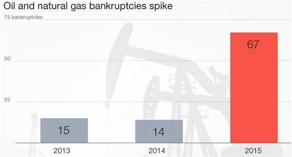 据美国咨询公司研究,2015年美国石油天然气企业申请破产数量增加。
