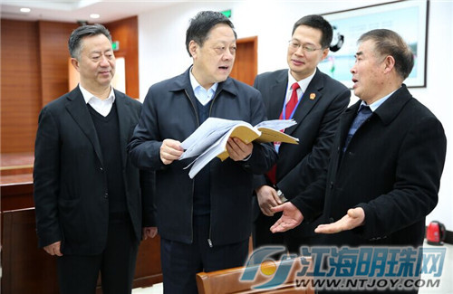 江海明珠网讯(记者 沈琪)3月24日,江苏省法院许前飞院长在南通市委常委、政法委曹斌书记和南通中院陈荣庆院长等陪同下,调研启东破产审判方式改革试点情况。许院长一行视察了启东诉讼服务中心,并与常驻中心的人民调解员进行了交流,了解矛盾纠纷多元化解情况。
