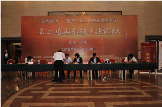 2016年5月28日-29日上午,第二届山东破产法论坛在济南市珍珠泉宾馆隆重召开。本届论坛的主题是“信息时代·僵尸企业依法处置的实践”,论坛由山东省法学会主办,山东省高级人民法院民二庭、山东省法学会企业破产与重组研究会承办,山东省律师协会、山东省银行业法律事务工作委员会、北京市中伦(青岛)律师事务所、山东华信清算重组集团有限公司协办。
