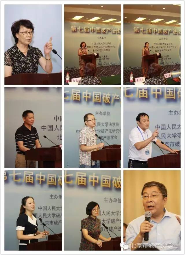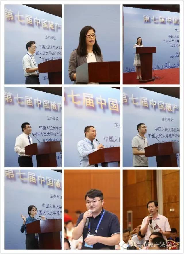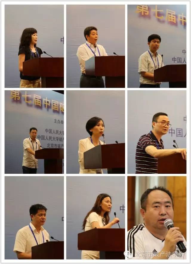 衢州市衢江区人民法院院长程品方的发言题目为“论共益债务在破产审判实务中的运用——以衢江法院的司法实践为例”;上海交通大学法学院博士研究生张玉海的发言题目为“登记对抗主义下未登记抵押权在抵押人破产时的效力”;浙江京衡律师事务所律师韩骏的发言题目为“出租人破产财产的租赁负担消除问题及解决”;浙江振邦律师事务所主任李乐敏的发言题目为“僵尸企业处置中的职工利益保护”;中欣重组顾问(北京)有限公司总经理宋全胜的发言题目为“破产程序中的债务人企业所得税的立法建议”。