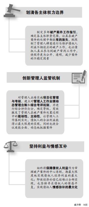 这些制度的设计,有效激发了管理人在破产案件处置过程中的能动性、主动性,让管理人工作落到实处,债权人的合法利益能得以最大限度的实现,同时也使合议庭能全面、动态地把握案件。