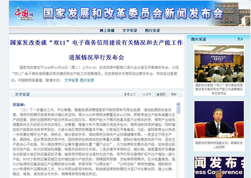 在国家发改委就“双11”电子商务信用建设有关情况和去产能工作进展情况举行发布会上, 发改委副秘书长许昆林表示, 中长期看,随着能源消费强度的不断回落和可再生能源、清洁能源的快速发展,煤炭市场需求很难有绝对增长的空间,预计2020年煤炭消费量至多41亿吨,即使考虑去产能和减量化生产的因素,到时全国煤炭产能仍然有46亿吨左右,煤炭产能大于需求的基本面不会根本改变,煤炭产业结构调整和优化升级的任务依然艰巨。近期看,随着今年冬季采暖负荷逐步加大,煤炭消耗将有所增加,同时增加的产能释放也将有序到位,大部分地区煤炭供需基本平衡,少数地区平衡偏紧。为此,部际联席会议将进一步统筹处理好去产能、保供应、稳价格的关系,推动煤炭及相关产业协调健康发展。