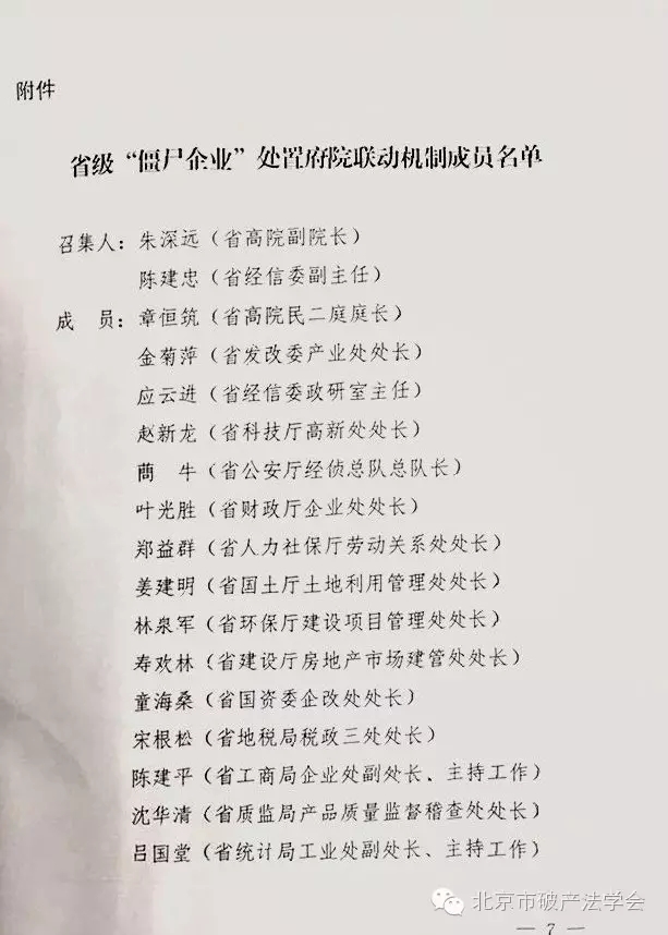 关于成立省级“僵尸企业”处置府院联动机制的通知