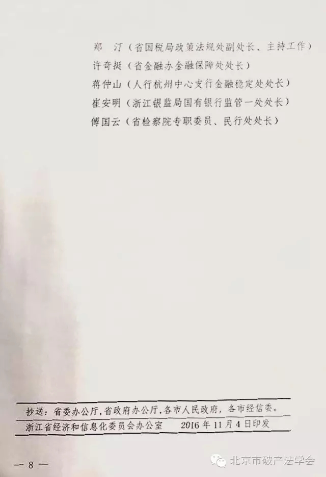 (十九)浙江银监局职责:推动银行业金融机构参与企业破产处置,督促银行业金融机构对符合一定条件的“僵尸企业”及时组建银行业金融机构债权人委员会,督促落实浙江银行业联合惩戒逃废金融债务行为的有关要求,对“僵尸企业”的逃废债行为依法采取联合惩戒措施。