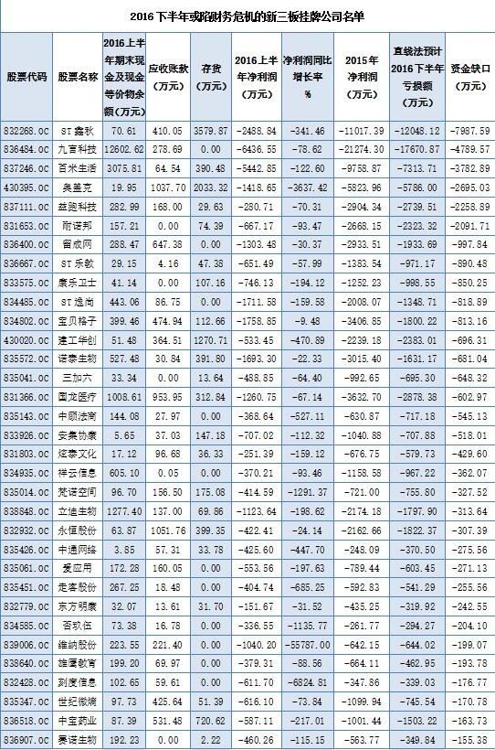 也就是说,新三板有近百家公司现金流状况堪忧,尽管公司将上半年存货全部清空、应收账款全部回收,加上库存现金,账面现金总额也不能维持公司的正常运转。更何况,这些公司的亏损情况还在持续恶化,今年下半年截至12月中旬,也还没新资金入驻。