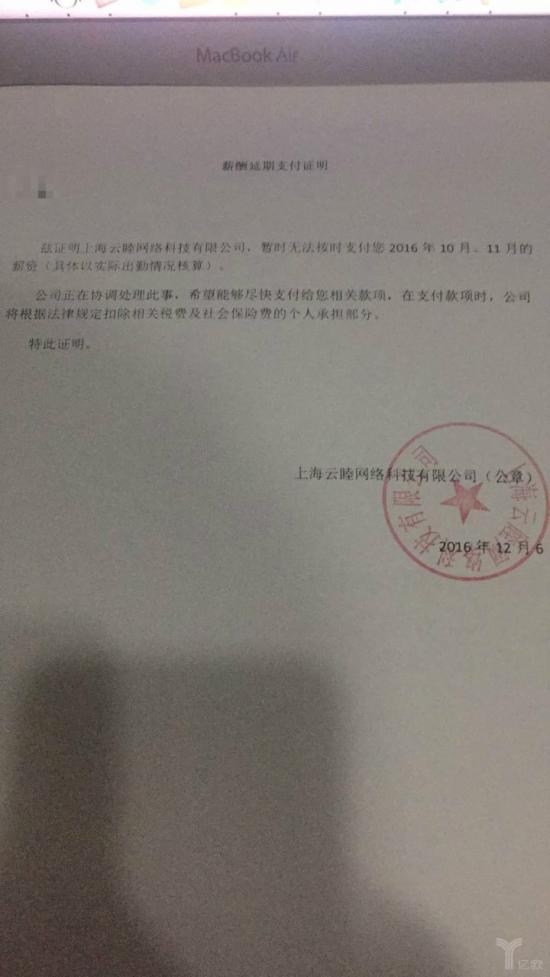 1)举报人爆料称班聊在11中旬让约20-30名销售、行政、产品、运营等人员签署离职协议,并承诺年前补发公司所拖欠的10月整月、11月上半月工资以及年终奖,但是公司管理层至今没有兑现承诺。据悉,班聊拖欠工资早有端倪,2016年6月公司内部就有相关传言,8月和9月工资都是在正常发工资日(每月15日)随后几天发放,之后便出现了部分员工欠薪、被“劝退”等情况。