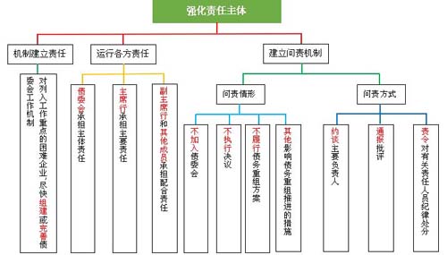 二、强化主体责任。对列入工作重点的困难企业,尽快组建或完善债委会工作机制。各银行业金融机构要严格按照《中国银监会办公厅关于做好银行业金融机构债权人委员会有关工作的通知》(银监办便函〔2016〕1196号)的要求,开展相关工作。债委会要切实负起主体责任,及时成立工作小组,积极推动债委会相关工作。主席行要切实负起主要责任,履行好债委会的发起、筹备、成立、日常运行及协调等责任。副主席行和其他成员要积极配合主席行工作。工作小组可以根据债委会的决定,收取一定运行费用。