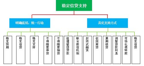 四、稳定信贷支持。金融债务重组期间,各银行业金融机构要做到稳定预期、稳定信贷、稳定支持,一致行动,不得随意停贷、抽贷;可通过必要的、风险可控的收回再贷、调整贷款利息、展期续贷、市场化债转股等方式,最大限度的帮助困难企业实现解困。债务重组期间,为救助企业的需要,经债委会决议,可以采取稳定信贷的措施。