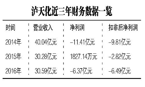 据了解,泸天化主营业务包括尿素、复合肥等化肥类产品,甲醇、浓硝酸及硝酸铵等化工类产品。泸天化在2016年实现的营业收入约为30.59亿元,同比微增1.04%,对应实现归属于上市公司股东的净利润亏损约6.37亿元,同比下降高达3587.42%,当期实现的扣非后净利润更是亏损约6.49亿元。对于业绩大幅下滑的原因,泸天化称“受行业产能过剩、能源价格下跌及国际低成本尿素投放等因素影响所致”。实际上自2013年起,泸天化的经营业绩陷入窘境,财务数据显示,公司在2013年、2014年的归属净利润分别亏损约3.33亿元、11.41亿元,尽管在2015年实现扭亏,不过泸天化在2015年实现的归属净利润仅约为1827.14万元。今年一季度泸天化实现的营业收入约为8.1亿元,对应归属净利润仅约为180.2万元,而扣非后的净利润仍亏损约571.34万元。