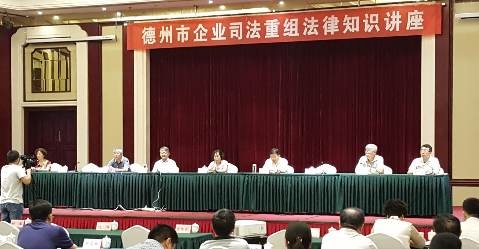 6月17日,山东省法学会企业破产与重组研究会会长刘平、副会长冀怀民、秘书长提瑞婷、常务理事史涛及智库专家徐阳光受邀出席了在德州召开的“德州市企业司法重组法律知识讲座”,刘平会长、冀怀民副会长在开幕式致辞、徐阳光教授、提瑞婷秘书长、史涛总经理做专题发言。