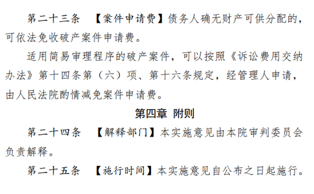 《实施意见》在现有法律规范的基础上,将依法高效审理贯穿于破产案件全过程,以简化环节、压缩时限、降低费用成本为着力点,构建破产案件繁简分流机制;对简单破产案件适用简易审理程序,在管理人指定、债务人财产调查、债权人会议、财产变价和分配等环节采用更为快捷高效的方式;对普通破产案件,通过加强网络信息化技术运用,强化对管理人的履职保障和监督,严格各程序节点时间把控等方式压缩审理进程,提高审判效率。《实施意见》的出台,将进一步发挥破产审判在推动“僵尸企业”快速出清、及时释放市场资源等方面的功能,为优化法治营商环境提供更优质高效的司法服务。