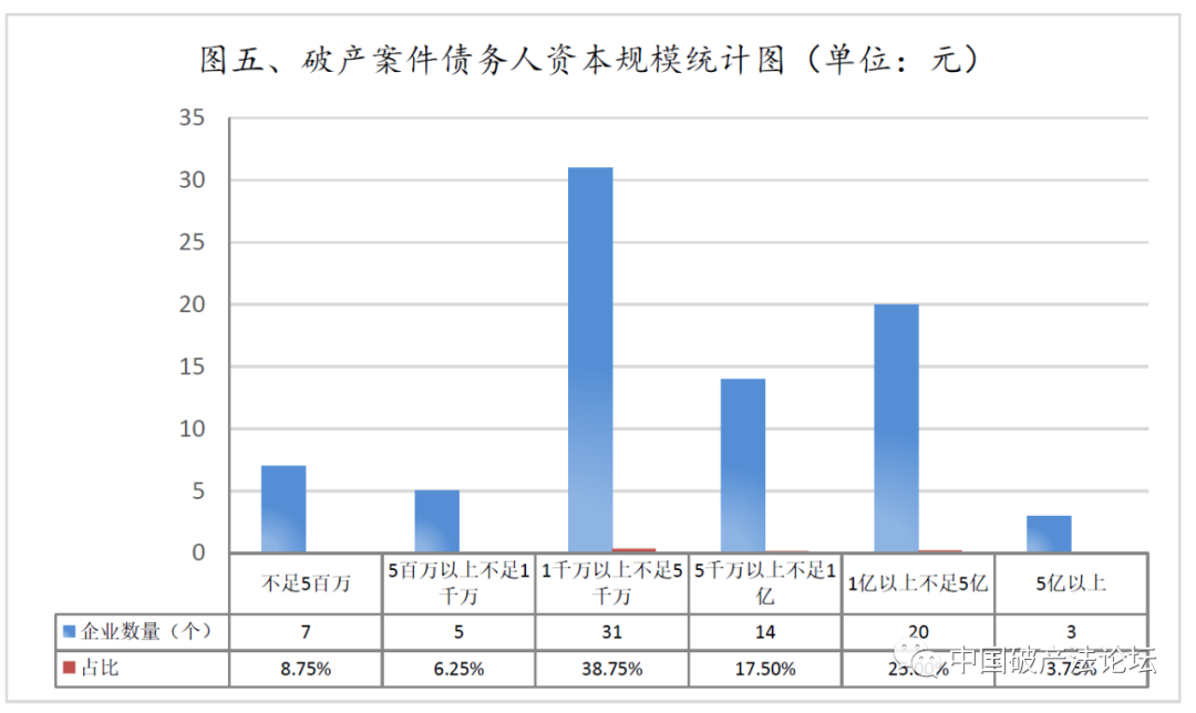 4.从资本规模来看,债务人企业多数为中小微企业。注册资本不足5000万元的债务人企业占比达53.75%。
