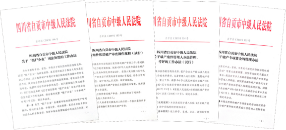 1.制定和发布《关于“僵尸企业”司法处置的工作办法》,规范“僵尸企业”的处置。市中院在全省法院范围内率先制定《关于“僵尸企业”司法处置的工作办法》,与市经信局、市国资委联合召开新闻发布会,面向社会公开予以发布。该工作办法为全市法院处置“僵尸企业”提供了依据和行动指南,为自贡市全面加快推进清理“僵尸企业”、调整产能过剩行业结构等工作贡献人民法院的力量。人民法院报、中国证券报、四川省人民政府门户网站、四川日报等多家媒体对市中院出台的《关于“僵尸企业”司法处置的工作办法》进行了专题报道。