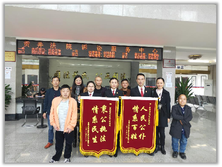 高新机械公司职工代表向贡井法院赠送锦旗