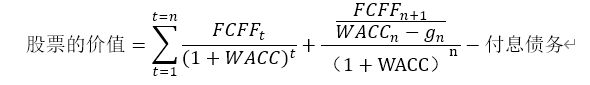 其中:FCFFt=第t年的企业自由现金流(净利润+利息费用*(1-所得税率)+折旧-资本性支出-营运资本追加额);WACC=高速增长阶段的资本加权平均成本;WACCn=稳定增长阶段的资本加权平均成本。