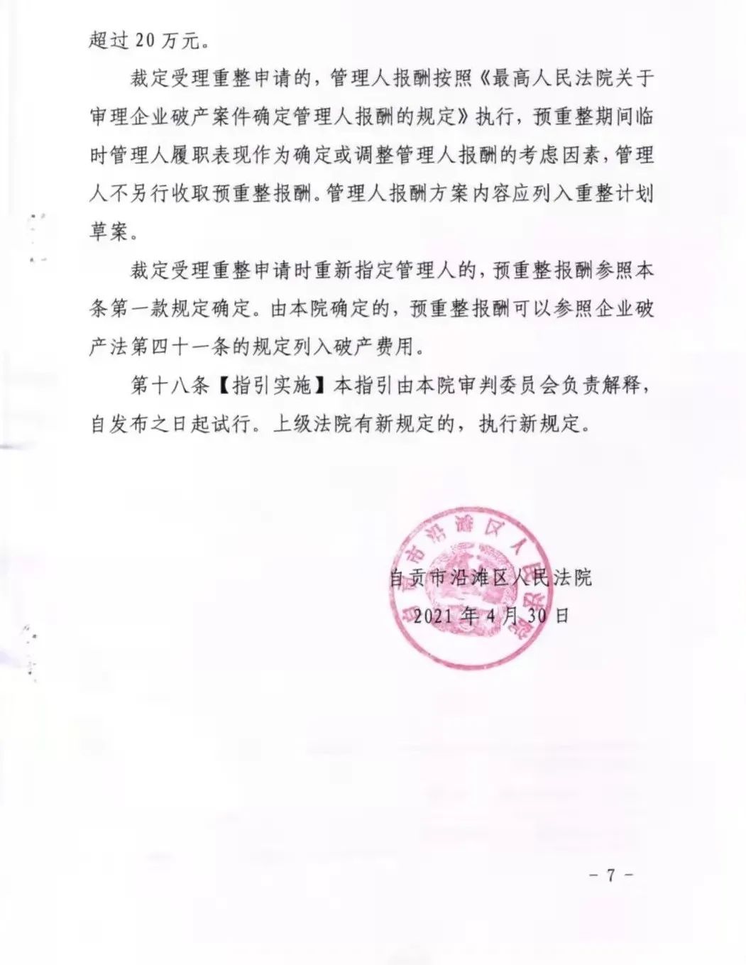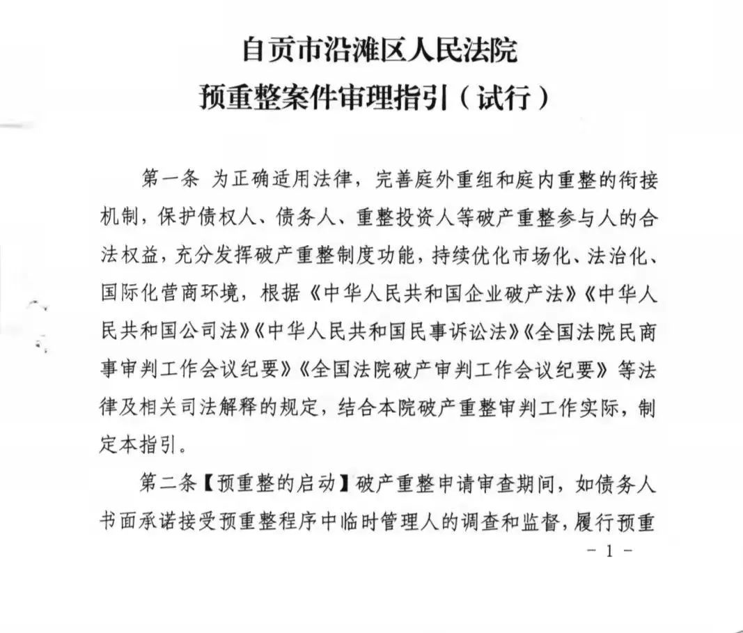 规范指引丨自贡市沿滩区人民法院《预重整案件审理指引(试行)》