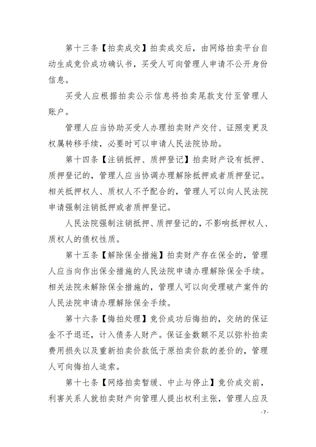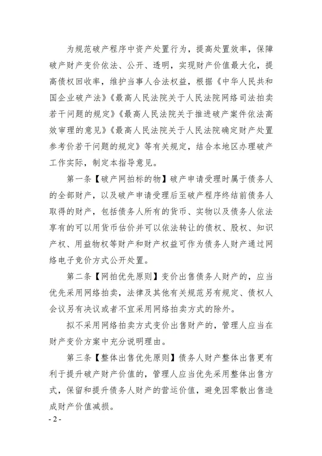 德州:德州市中级人民法院《关于破产网络拍卖工作指导意见(试行)》