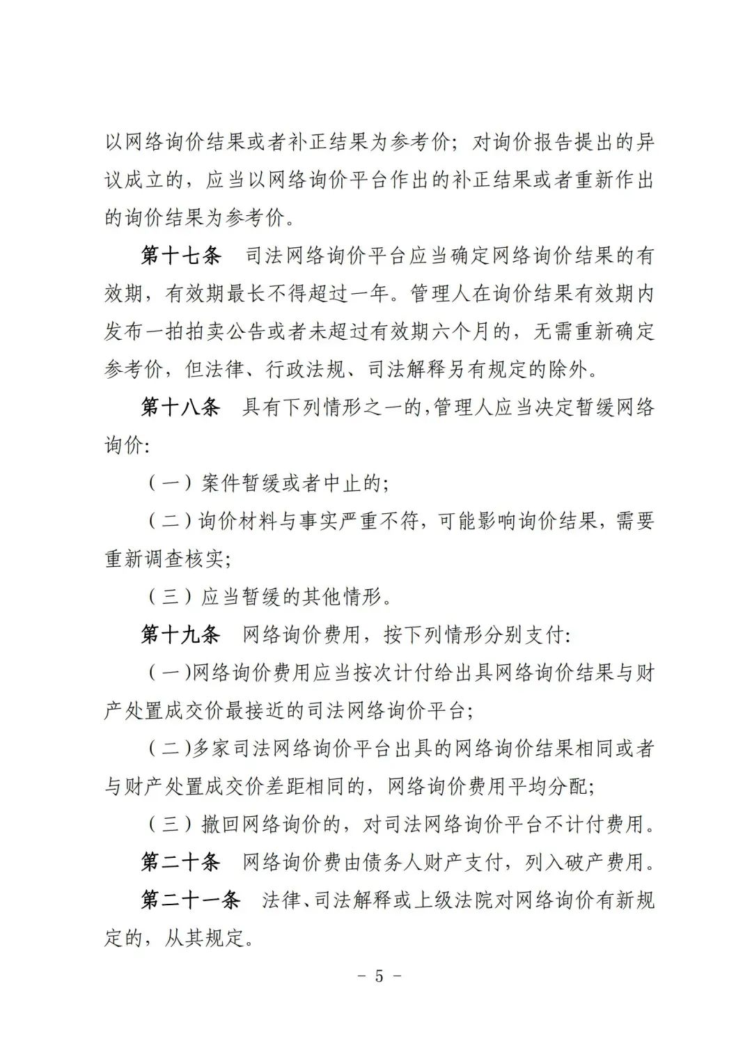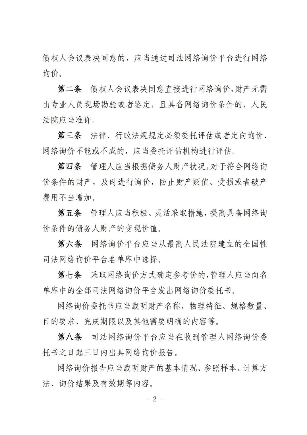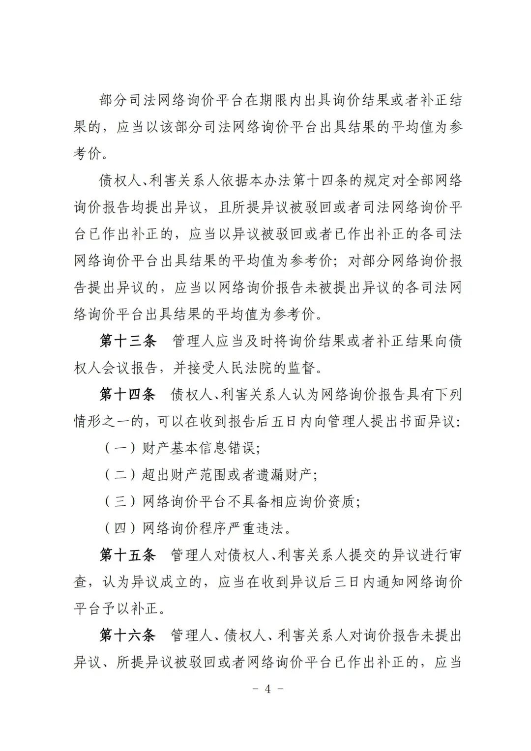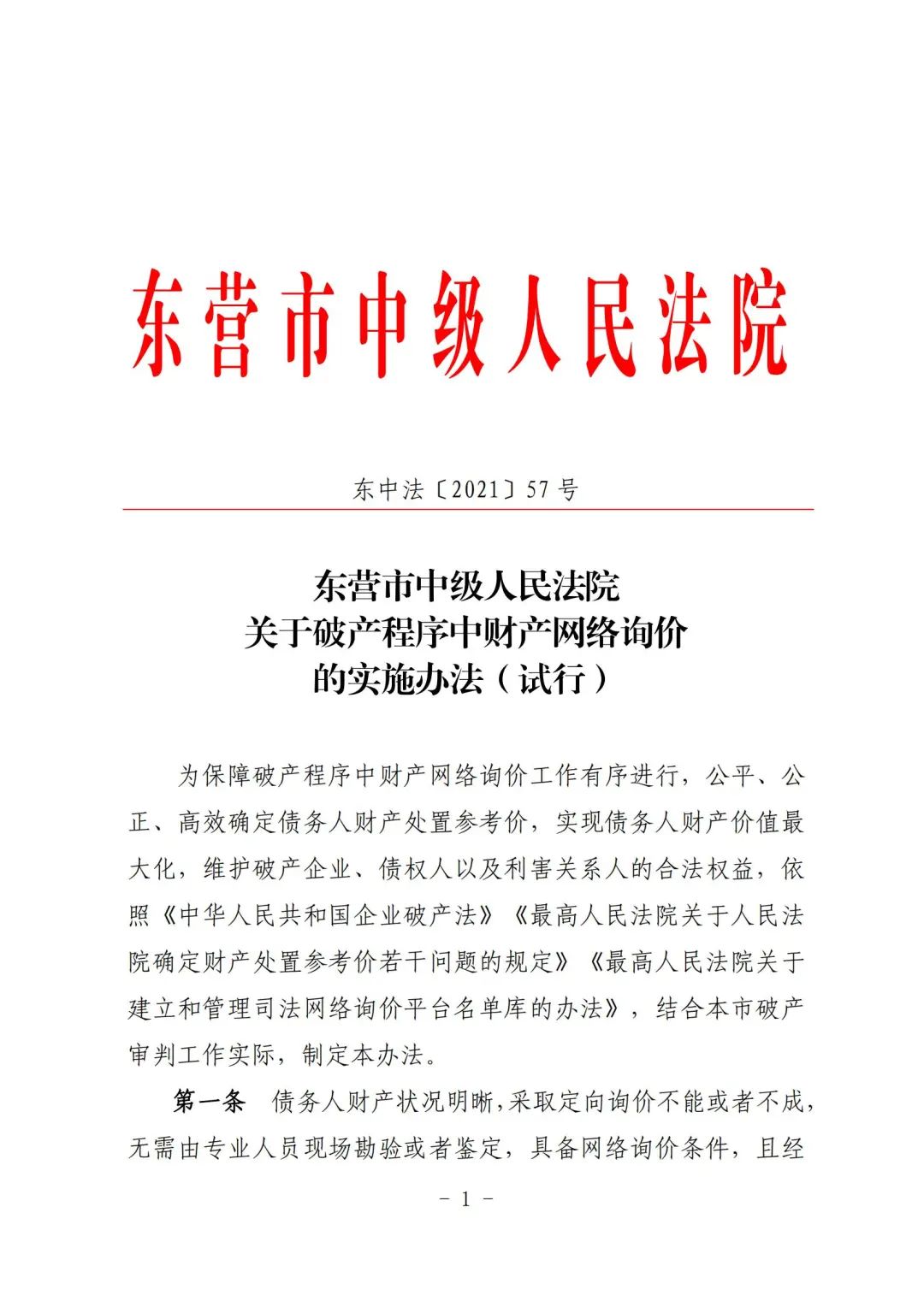 东营:东营市中级人民法院《关于破产程序中财产网络询价的实施办法(试行)》