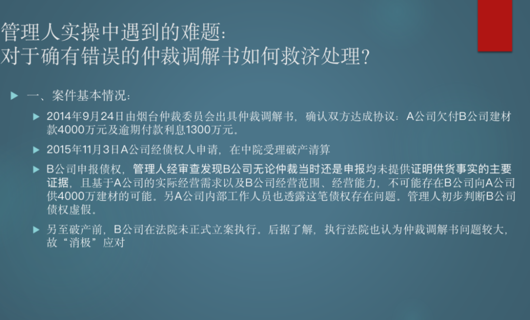 一、管理人实操中遇到的难题:对于确有错误的仲裁调解书如何救济处理?