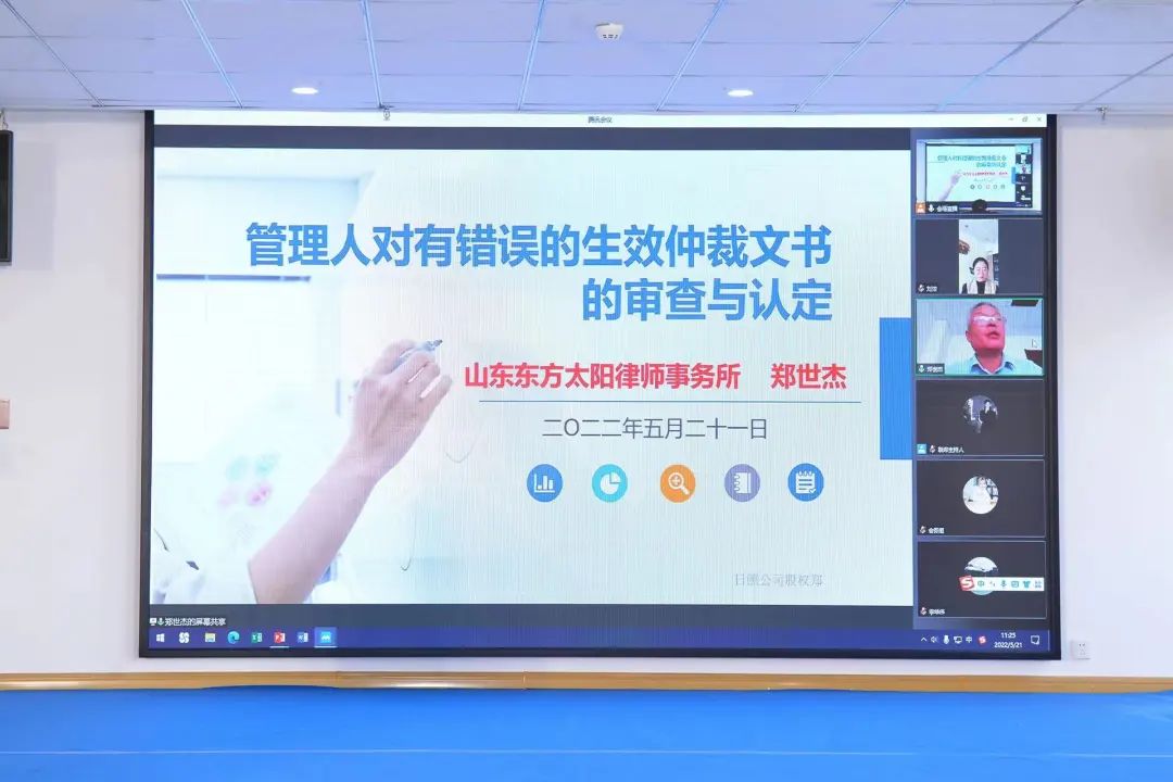 2022年5月21日上午,青岛市法学会破产法研究会一届二次理事会会议暨胶东经济圈一体化背景下破产与仲裁之冲突与协调论坛在青岛成功举办。论坛采取线上线下相结合的方式举行,面向全国直播,国内破产法、仲裁法理论界与实务界人士近7.5万人次在线收看论坛直播。参会嘉宾围绕破产与仲裁交叉的多个问题进行了深入探讨,交流有益经验,分享研究成果。下面推送的是日照市法学会破产法学研究会会长郑世杰的嘉宾发言内容,题为“管理人对有错误的生效仲裁文书的审查与认定”。