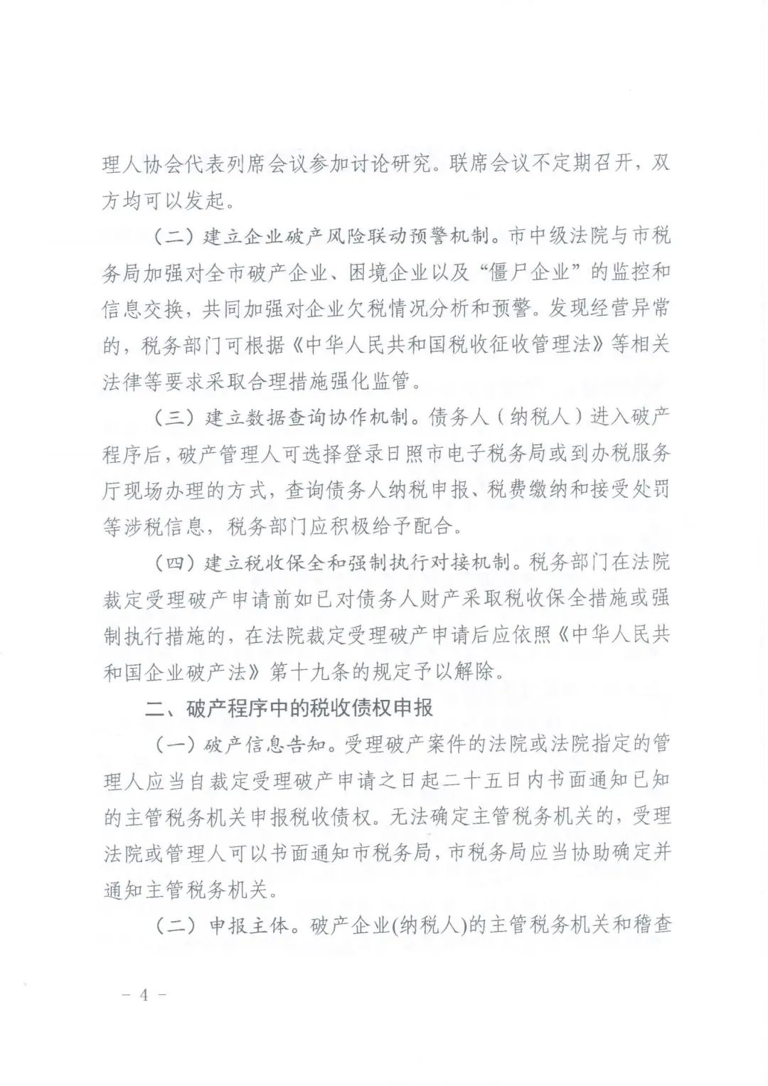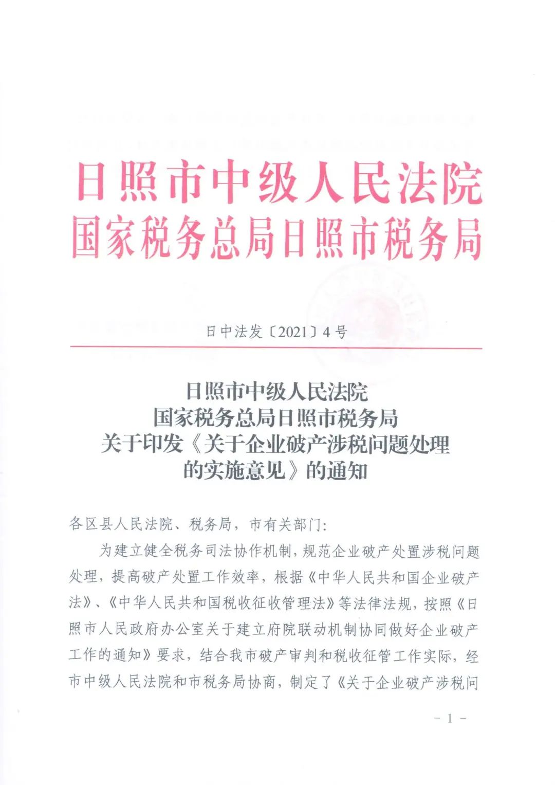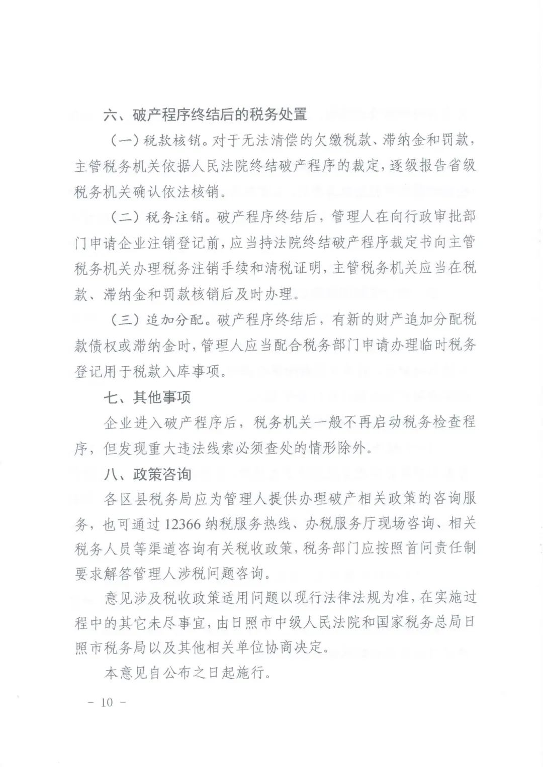日照:日照市中级人民法院《关于企业破产涉税问题处理的实施意见》